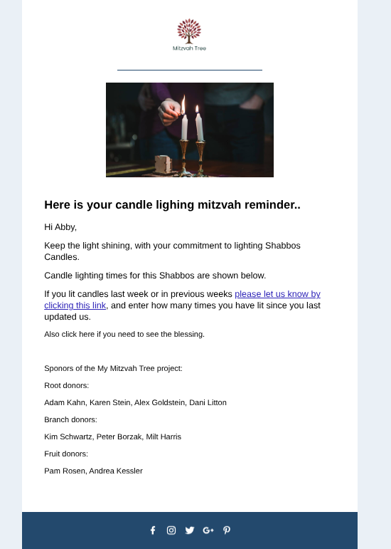 When we send reminders to participants, we include a link for them to record their mitzvot.